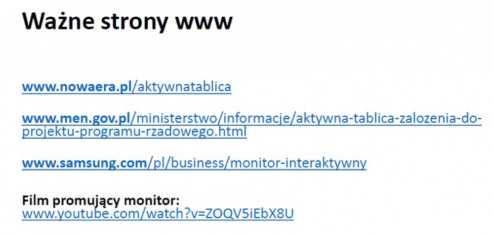 Otrzymana dotacja w kwocie 14 000,00 zł, dla każdej placówki oświatowej, od Wojewody Dolnośląskiego, w imieniu którego działa Dolnośląski Kurator Oświaty, zostanie wykorzystana na zakup 6 monitorów interaktywnych firmy SAMSUNG QB65H-TR o wielkości 65 cali. Pomoce te przysłużą sie do jeszcze bardziej kreatywnego prowadzenia zajęć przez nauczycieli uczących w tych szkołach.