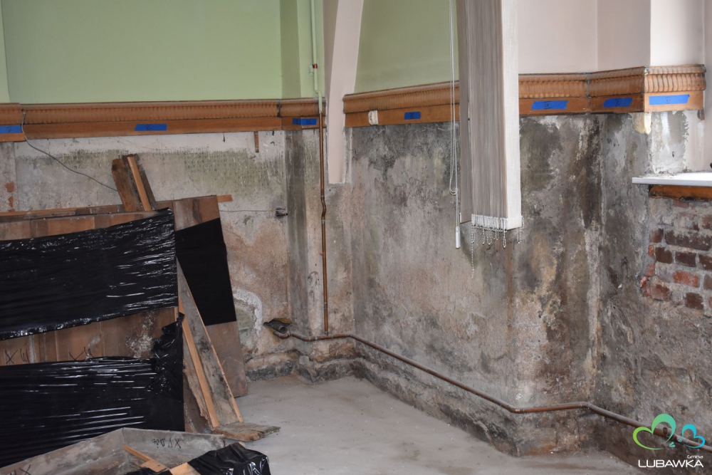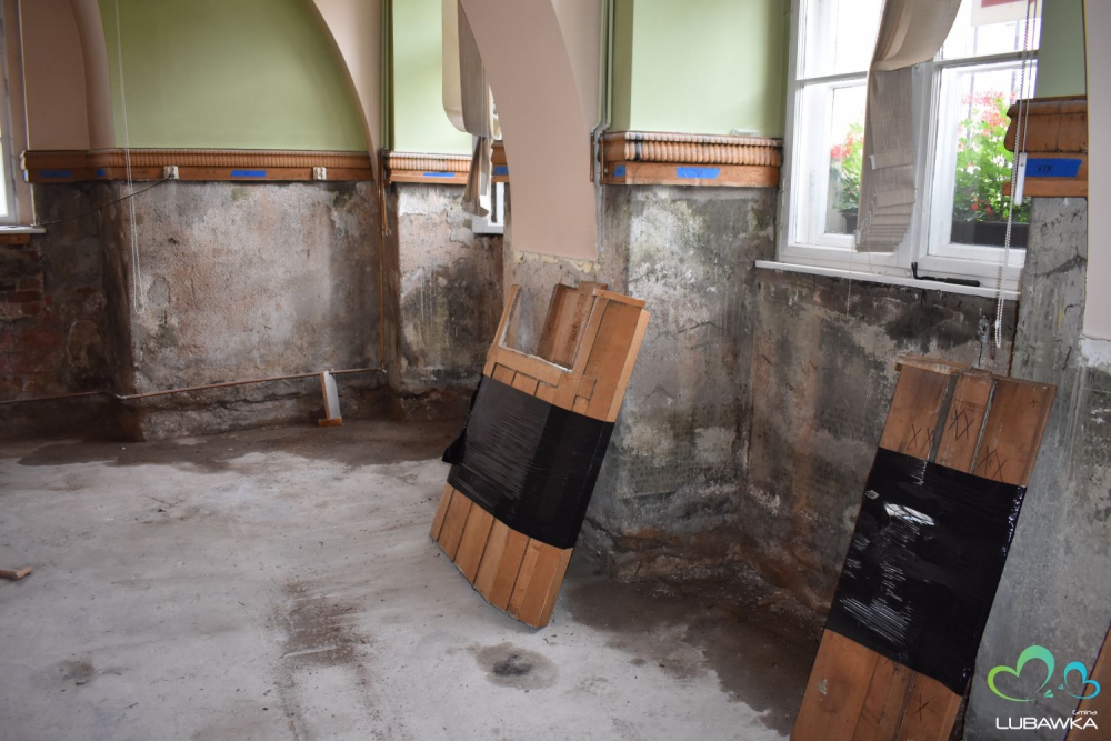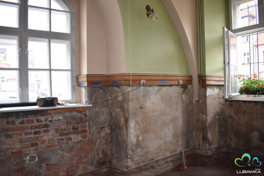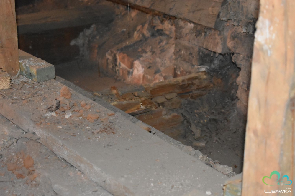 Po usunięciu polepy, desek z podłogi na strychu i wyniesieniu szlaki umieszczonej w stropie nad poddaszem odsłonił się pełen obraz konstrukcji drewnianej stropu oraz więźby dachowej w Ratuszu. W złym stanie są belki stropowe. W wielu przypadkach nie nadają się do dalszej eksploatacji. Do wymiany są również płatwie kalenicowe. Stan techniczny więźby wymaga dodatkowej konsultacji projektantów termomodernizacji Ratusza z Inspektorem nadzoru co do zakresu oraz sposobu prac zabezpieczających bądź wymiany elementów. Po zdjęciu boazerii z pomieszczenia na parterze odsłoniły się ściany. Okazało się, że są w dobrym stanie. Nie ma zbyt dużego zawilgocenia jak wcześniej przypuszczano.