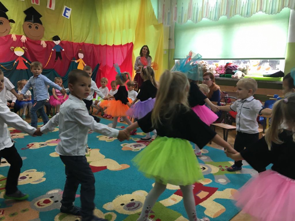 Grupa "Skrzatów" wprowadziła w świat przedszkolaków młodszą grupę "Krasnali". Obydwie grupy wspólnie przygotowały występ muzyczno-taneczny.
