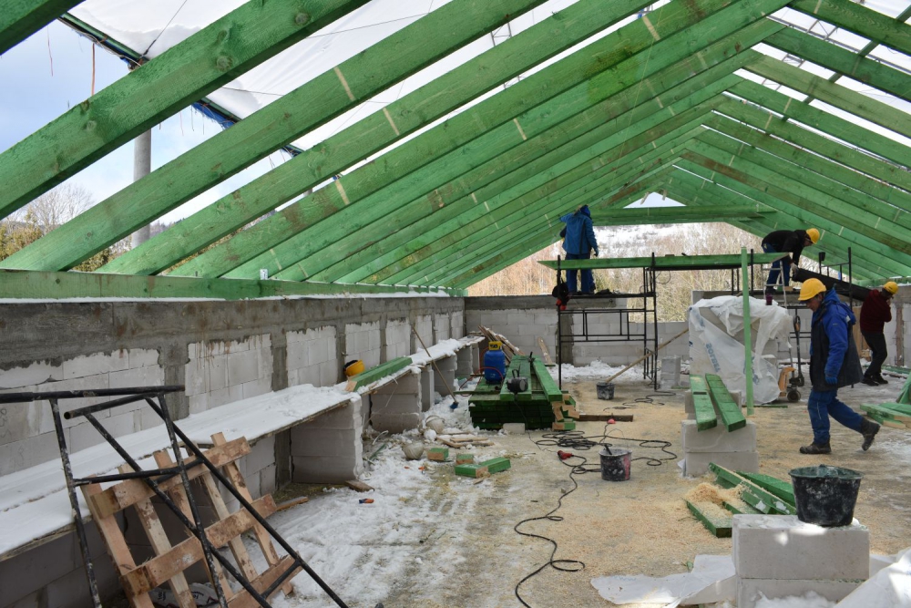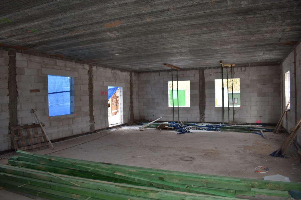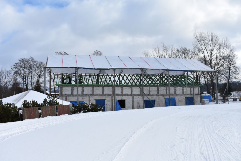 Aktualnie wykonywana jest konstrukcja dachu, rozpoczęto także prace elektryczne.