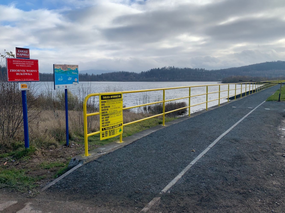 Obszar wokół zbiornika od strony miejscowości Paprotki po zaporę boczną w Miszkowicach i dalej w kierunku drogi 369 pozostaje cały czas terenem budowy. Z uwagi na rozległość obszaru objętego pracami budowlanymi oraz na duże i nie do końca uzasadnione koszty, teren nie jest ogrodzony. Powoduje to złudne mniemanie, iż ścieżka, obiekty sanitarne po wykonaniu mogłyby zostać oddane do użytkowania. Niestety, do zakończenia budowy, obszar, na którym realizowana jest inwestycja, w dalszym ciągu jest i pozostaje placem budowy.
