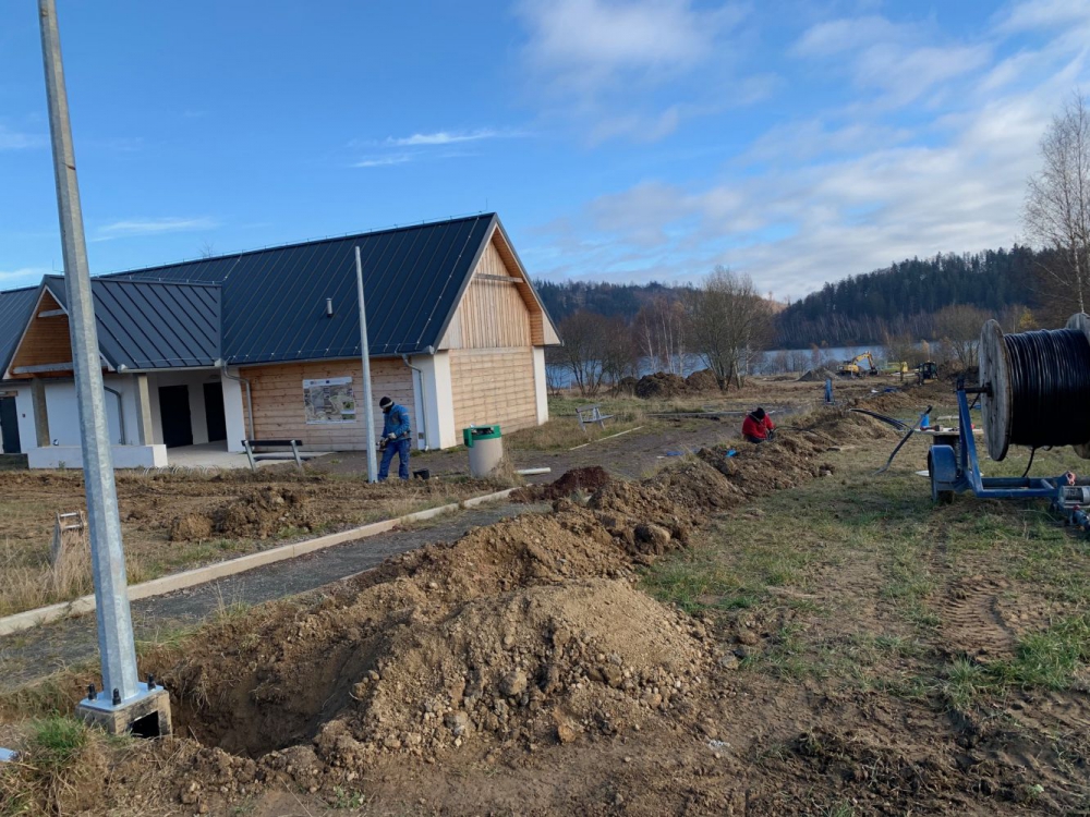 Nad zbiornikiem Bukówka cały czas trwają prace budowlane, realizujące zakres zagospodarowania terenu, na które dostaliśmy dofinansowanie z Unii Europejskiej (tzw. I etap zagospodarowania).