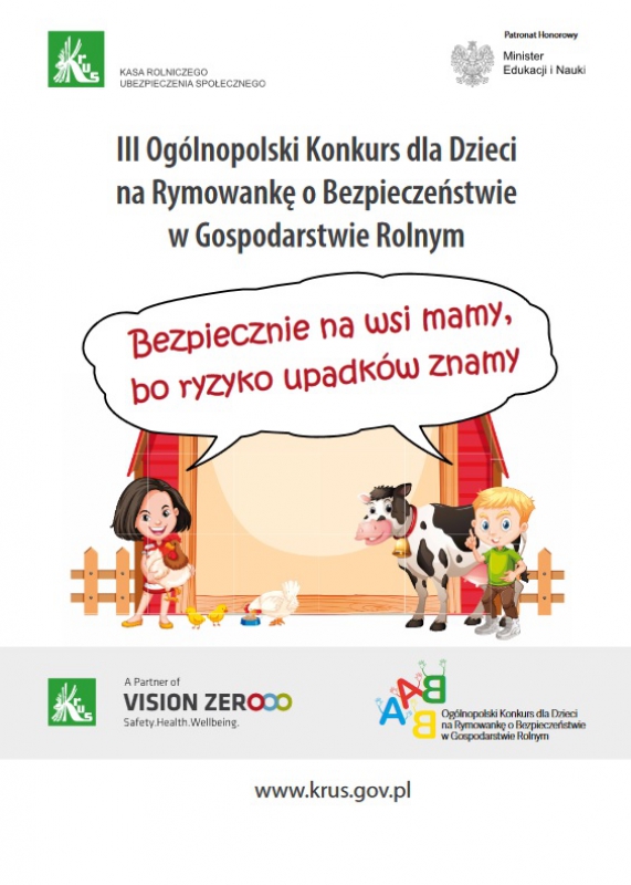 Kasa Rolniczego Ubezpieczenia Społecznego ogłasza III Ogólnopolski Konkurs dla Dzieci na Rymowankę o Bezpieczeństwie w Gospodarstwie Rolnym
