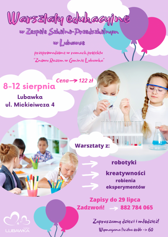 Warsztaty edukacyjne z robotyki, kreatywności i robienia eksperymentów, które miały się odbyć w dniach 11-15 lipca zostały przeniesione na 8-12 sierpnia.