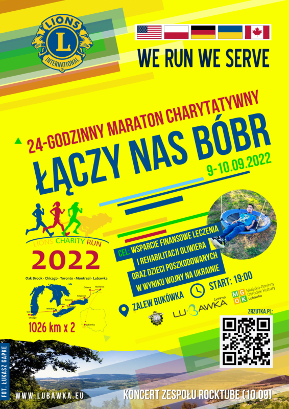 Serdecznie zapraszamy do udziału w 24-godzinnym marszobiegu charytatywnym ? Łączy nas Bóbr, organizowanym przez Stowarzyszenie im. Opata Bernarda Rosy przy współpracy Gminy Lubawka, który trwać będzie od dzisiaj (9 września br., od godz. 19.00) do jutra (10 września br. do godz. 19.00).