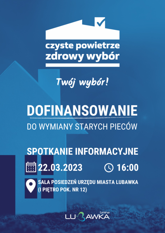 Spotkanie informacyjne w ramach programu "Czyste Powietrze" Serdecznie zapraszamy na spotkanie informacyjne, które odbędzie się w dniu 22 marca 2023 r. o godz. 16:00 w Urzędzie Miasta w Lubawce. Galeria zdjęć Paulina Rogowska WR Data wydarzenia: 2023-03-17 Stworzony: 2023-03-17 09:39 Edytowany: 2023-03-17 09:40