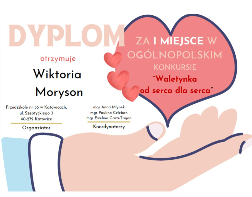 Wiktoria Moryson zwyciężczynią Ogólnopolskiego Konkursu Walentynka - od serca dla serca"