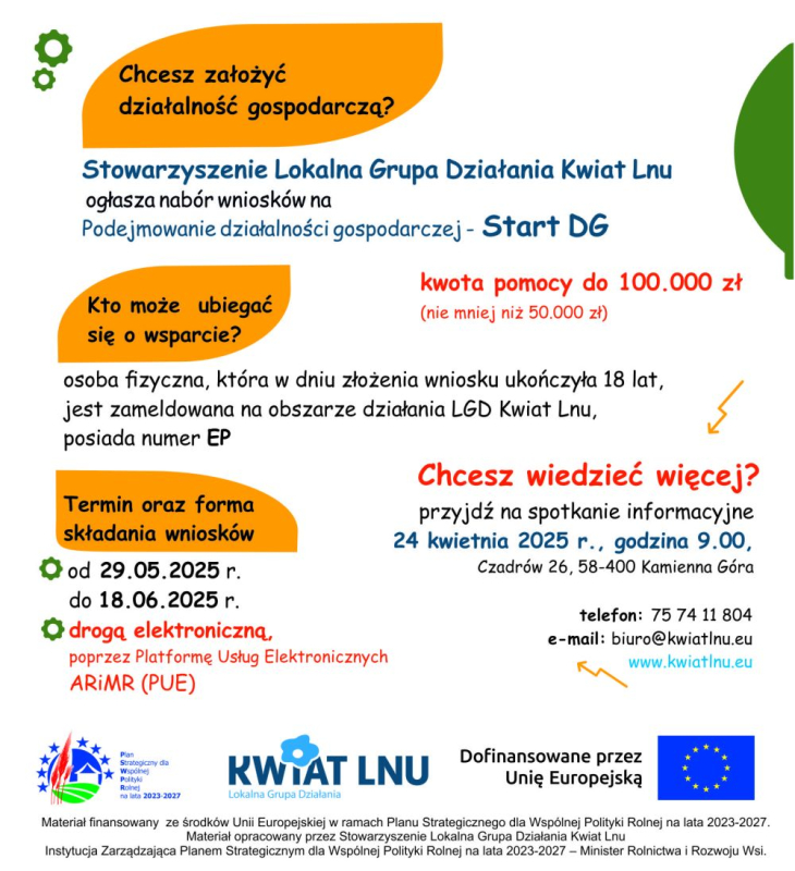 Miejsce: siedziba biura LGD Kwiat Lnu, Czadrów 26, 58-400 Kamienna Góra