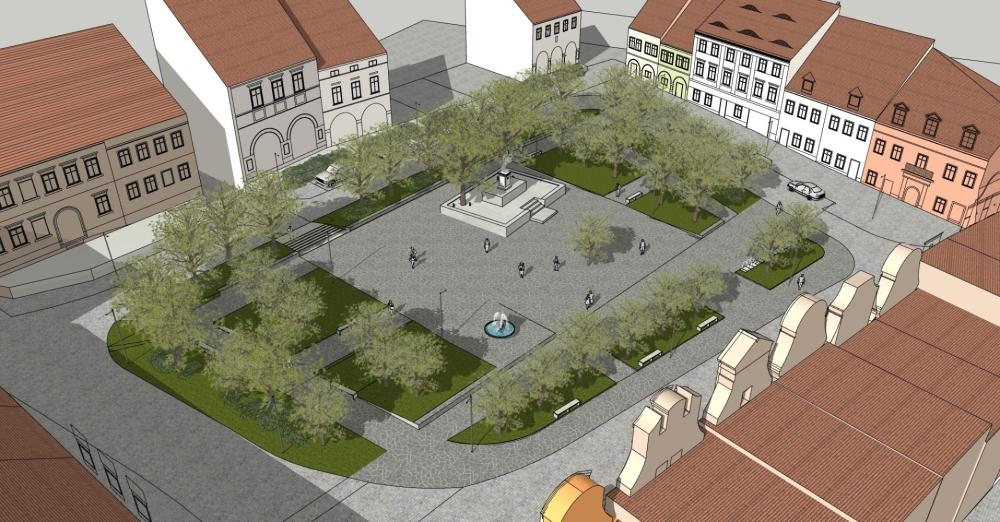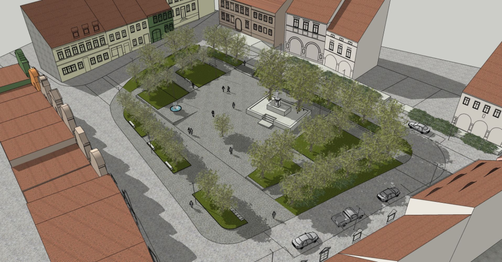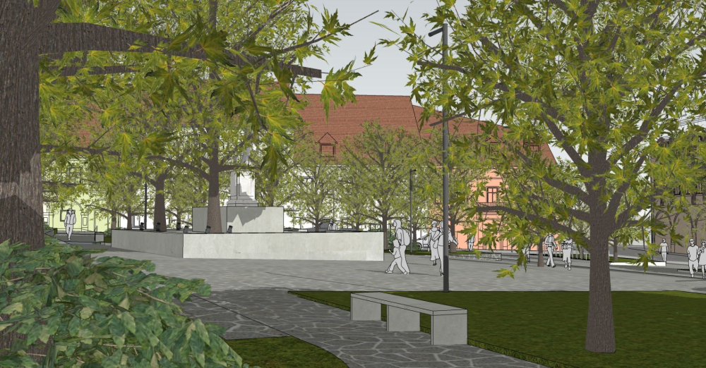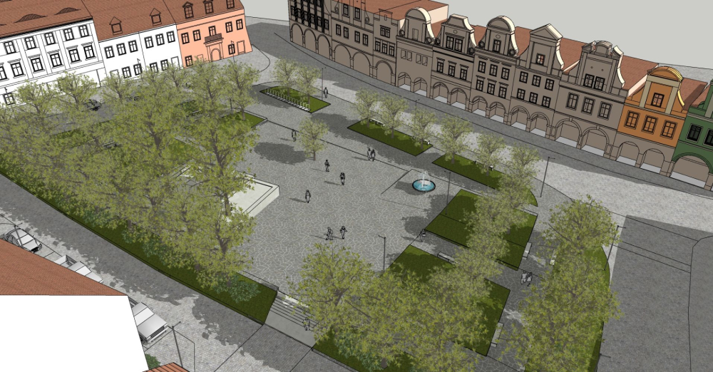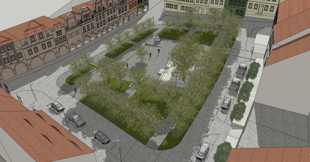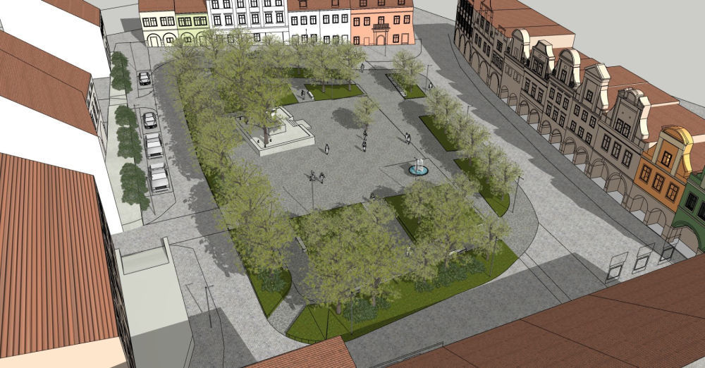 Uporządkowanie i uzupełnienie istniejącego szpaleru drzew, nowe nasadzenia w środkowej części rynku.