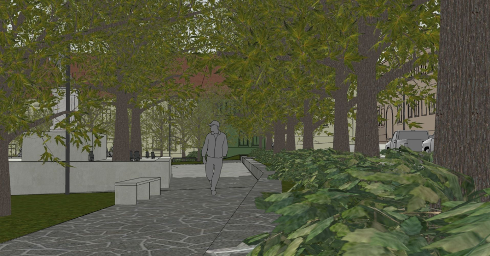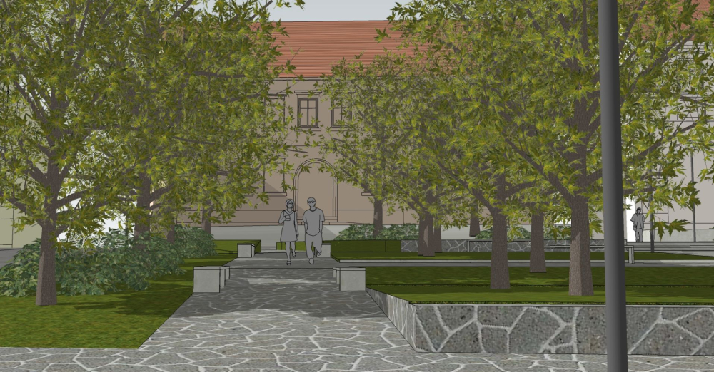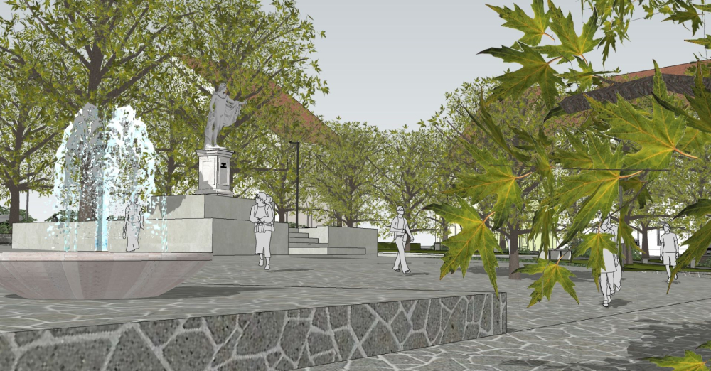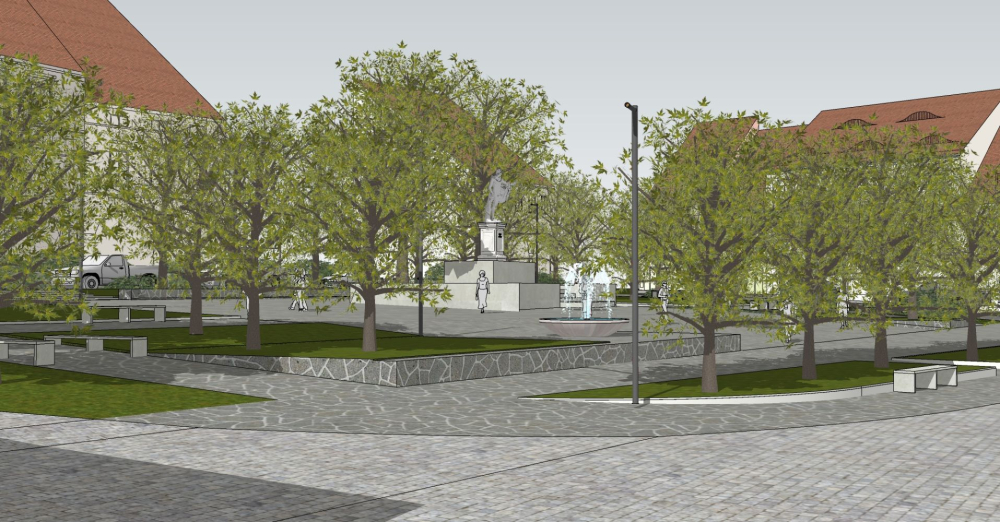 Nowa fontanna z tryskającą wodą - w formie niecki - pojawi się w osi widokowej prowadzącej do kościoła.