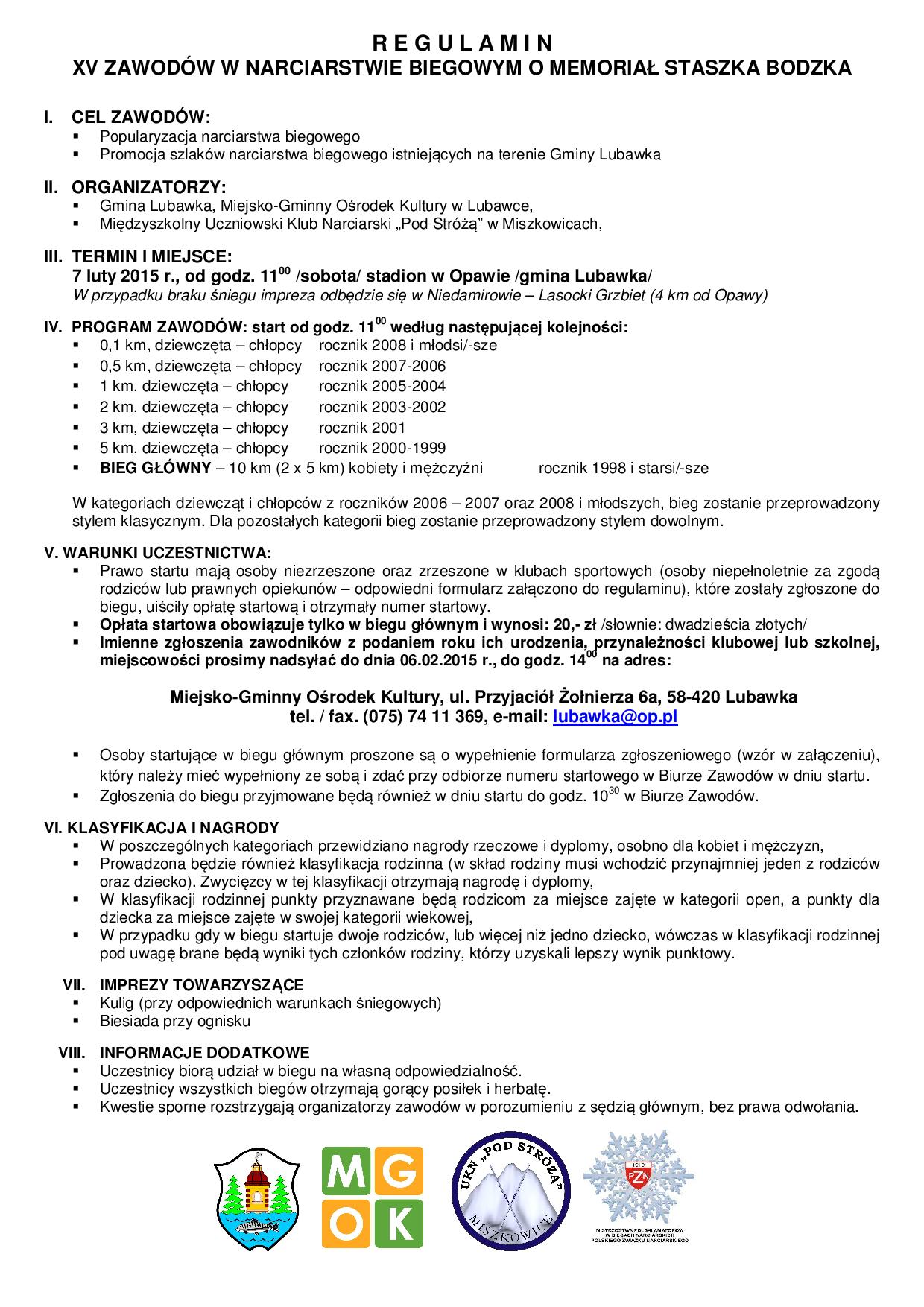 Do udziału w zawodach zapraszamy zarówno zawodników licencjonowanych jak i zawodników niezrzeszonych a także dzieci i rodziny. Poniżej zamieszczamy Regulamin zawodów.