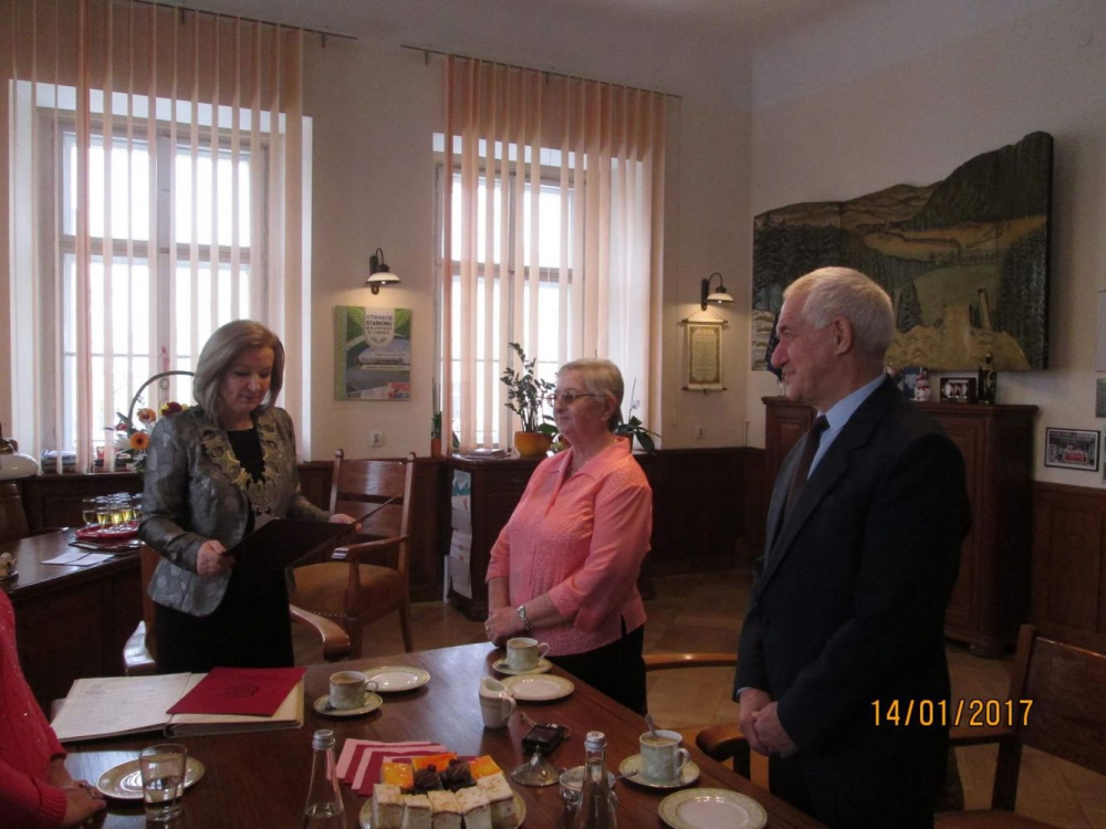 W dniu dzisiejszym tj. 14.01.2017 r. o godzinie 14:00 w siedzibie Urzędu Miasta Lubawka w gabinecie burmistrza odbyła się uroczystość 50-lecia pożycia małżeńskiego Państwa Teresy i Stanisława Szyszko. Oficjalny początek wspólnej drogi Państwa Szyszko nastąpił 27 sierpnia 1966 roku w Urzędzie Stanu Cywilnego w Lubawce, bowiem tego dnia nasi Jubilaci zawarli związek małżeński. Wspólnie wychowali syna. Obecnie cały swój wysiłek wkładają w pomoc dziecku i wspólnie budują rodzinne ciepło.
