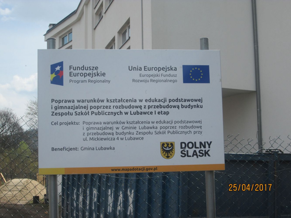 -Poprawa warunków kształcenia w edukacji podstawowej i gimnazjalnej poprzez rozbudowę z przebudową budynku Zespołu Szkół Publicznych w Lubawce I etap