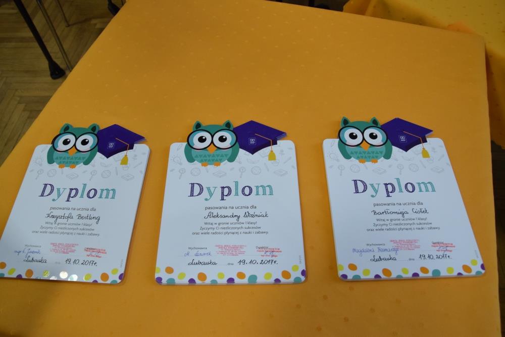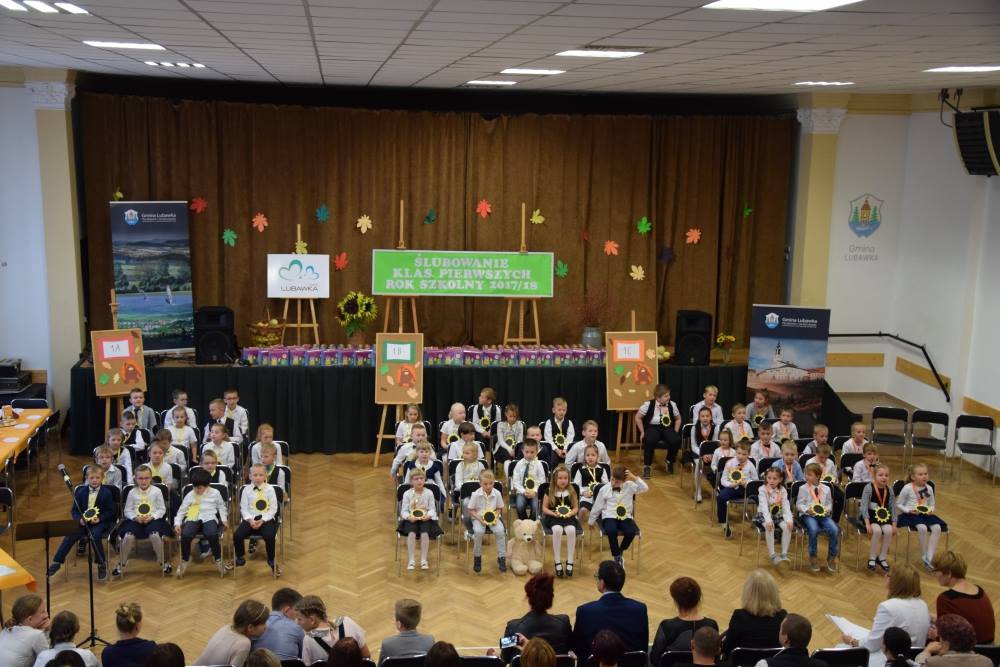 Uroczystość ślubowania odbyła się 19 października 2017 roku w Domu Kultury w Lubawce. W tej doniosłej chwili obecna była Dyrekcja Szkoły, pani Burmistrz Miasta Lubawka Ewa Kocemba, rodzice i dziadkowie uczniów oraz zaproszeni goście. Uroczystość została przeprowadzona przez panią Wiesławę Jarzmik. Poczet sztandarowy wprowadziła młodzież z II i III gimnazjum. Pierwszoklasiści zostali obdarowani drobnymi upominkami przez panią Burmistrz Miasta Lubawka oraz uczniów klas siódmych. Po wręczeniu pamiątkowych dyplomów, czekała na nich niespodzianka przygotowana przez rodziców w postaci słodkiego poczęstunku.