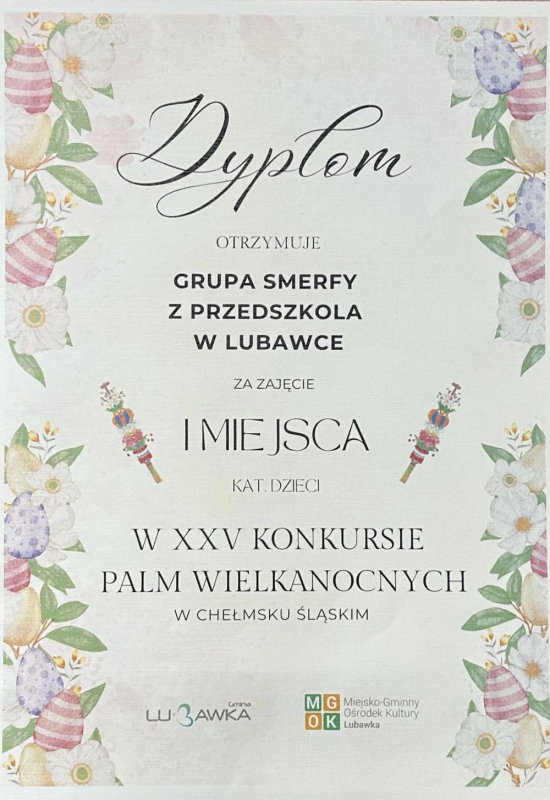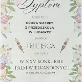 W konkursie udział wzięły Smerfy, które przygotowały wraz z rodzicami unikalną prace, starannie dekorując swoją palmę wielkanocną. Nasza palma odzwierciedlała indywidualność i pomysłowość naszych uczestników. Bardzo dziękujemy rodzicom i organizatorom konkursu za świetną zabawę.