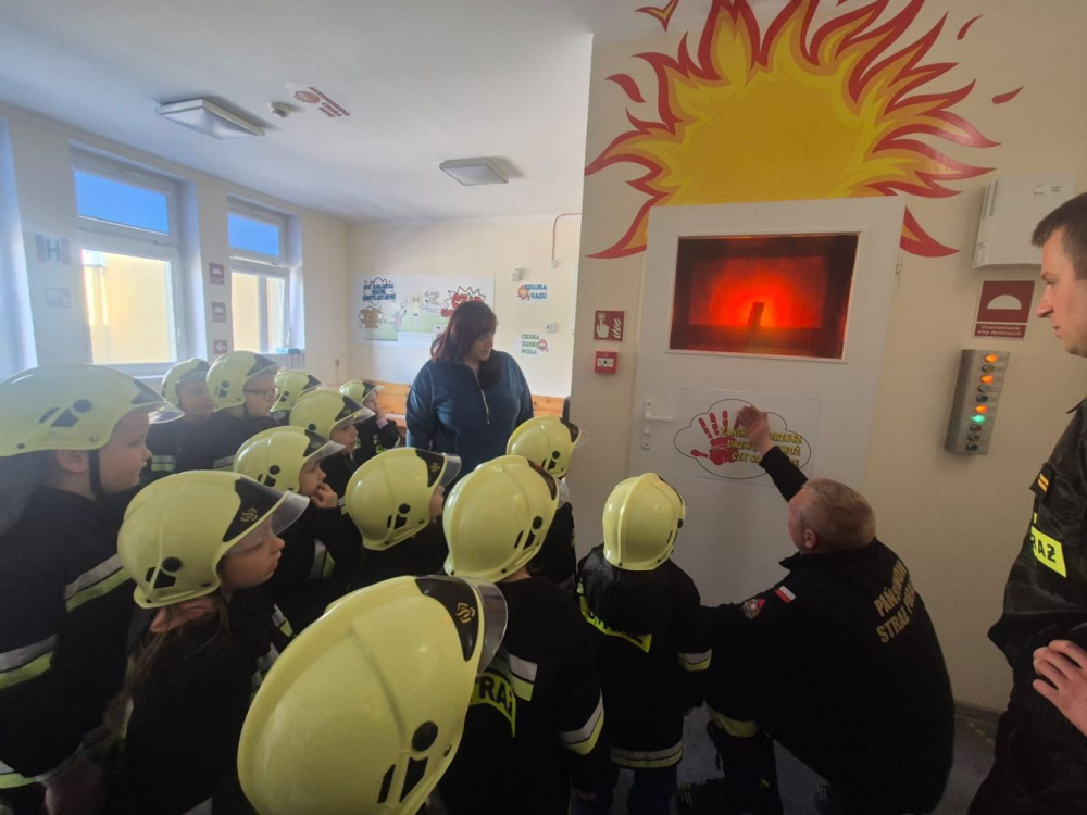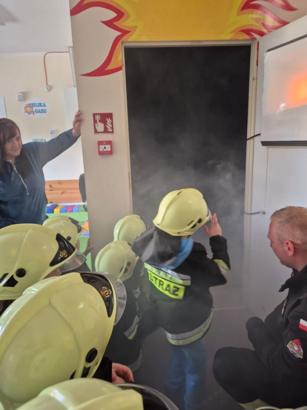Przez chwile wszyscy uczestnicy wycieczki mogli poczuć się jak prawdziwi strażacy, przymierzając hełm czy zobaczyć pokaz gaszenia pożaru. Po tym spotkaniu nie tylko chłopcy stwierdzili, że w przyszłości chcieliby zostać strażakami. Na koniec naszej wizyty dzieci gorąco podziękowały strażakom za miłe i pouczające spotkanie, które z całą pewnością na długo pozostanie w pamięci.