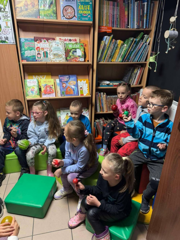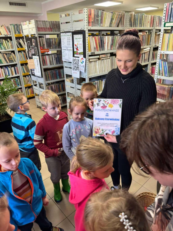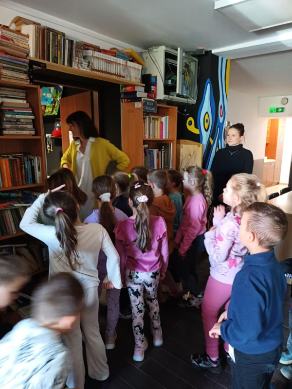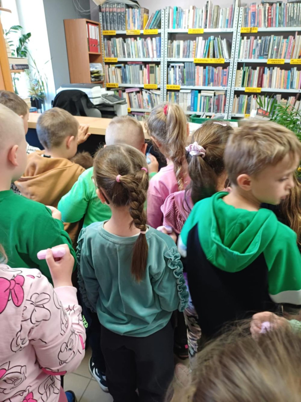 W czwartek Biedronki i Smerfy, a dziś Motylki odwiedziły bibliotekę miejską. Dla wielu z nich była to pierwsza wizyta w takim miejscu. Dzieci z zainteresowaniem zwiedzały biblioteczne zakamarki, poznając zasady wypożyczania książek i zachowania ciszy.