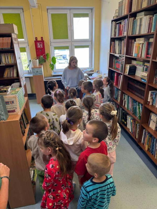 8 maja to Dzień Bibliotekarza i Bibliotek, dlatego grupa Biedronek postanowiła wybrać się do biblioteki, aby podziekować za pracę pani bibliotekarki oraz życzyć mnóstwa szczęśliwych dni, pełnych książkowych przygód. Pani bibliotekarka oprowadziła dzieci po bibliotece oraz wyjaśniła jaką funkcję spełnia bibiloteka. Przedszkolaki były zaciekawione, obiecały niedługo wrócić, aby wypożyczyć książki.
