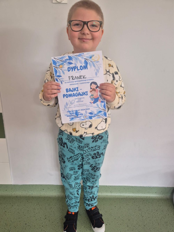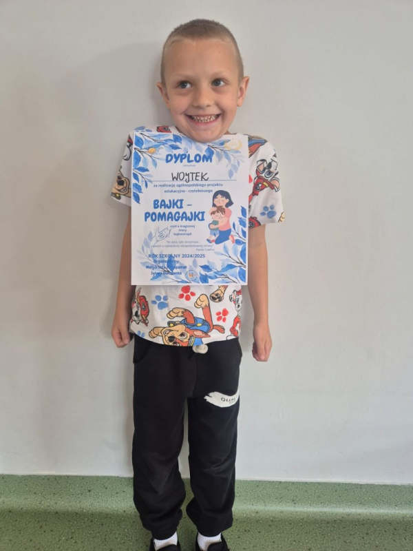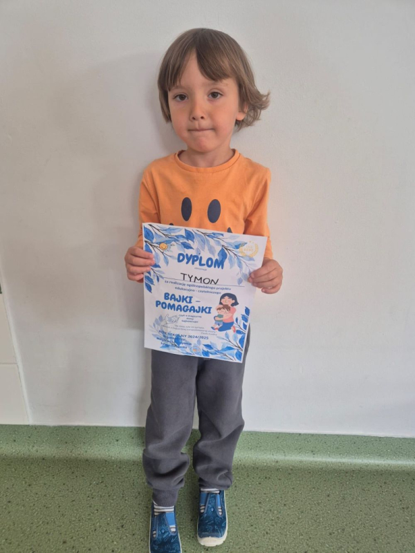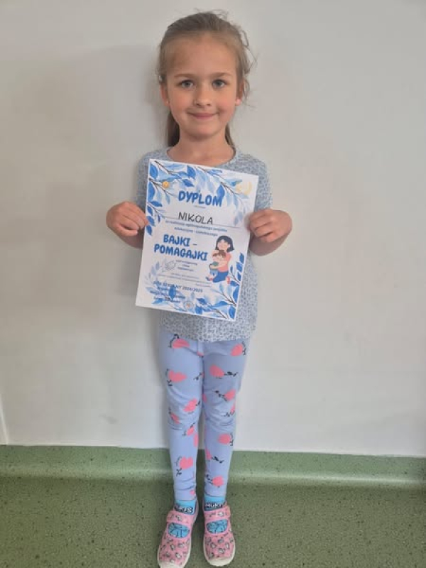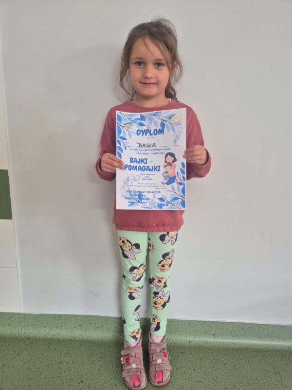 Przez cały rok szkolny przeczytaliśmy wiele bajek, które miały na celu rozwijanie umiejętności radzenia sobie z emocjami, kształtowanie empatii, budowanie poczucia bezpieczeństwa i wiary we własne siły, a także wspieranie rozwoju językowego i społecznego. Każdy dostał pamiątkowy dyplom.