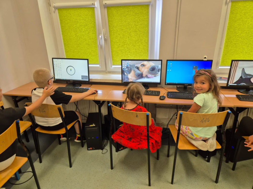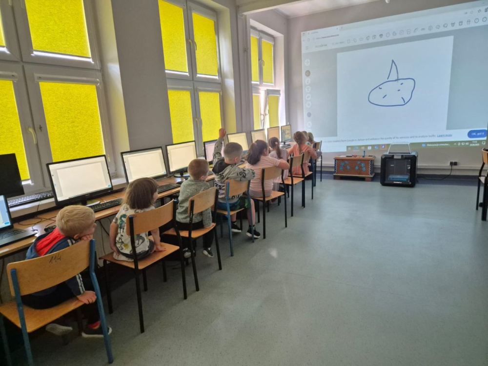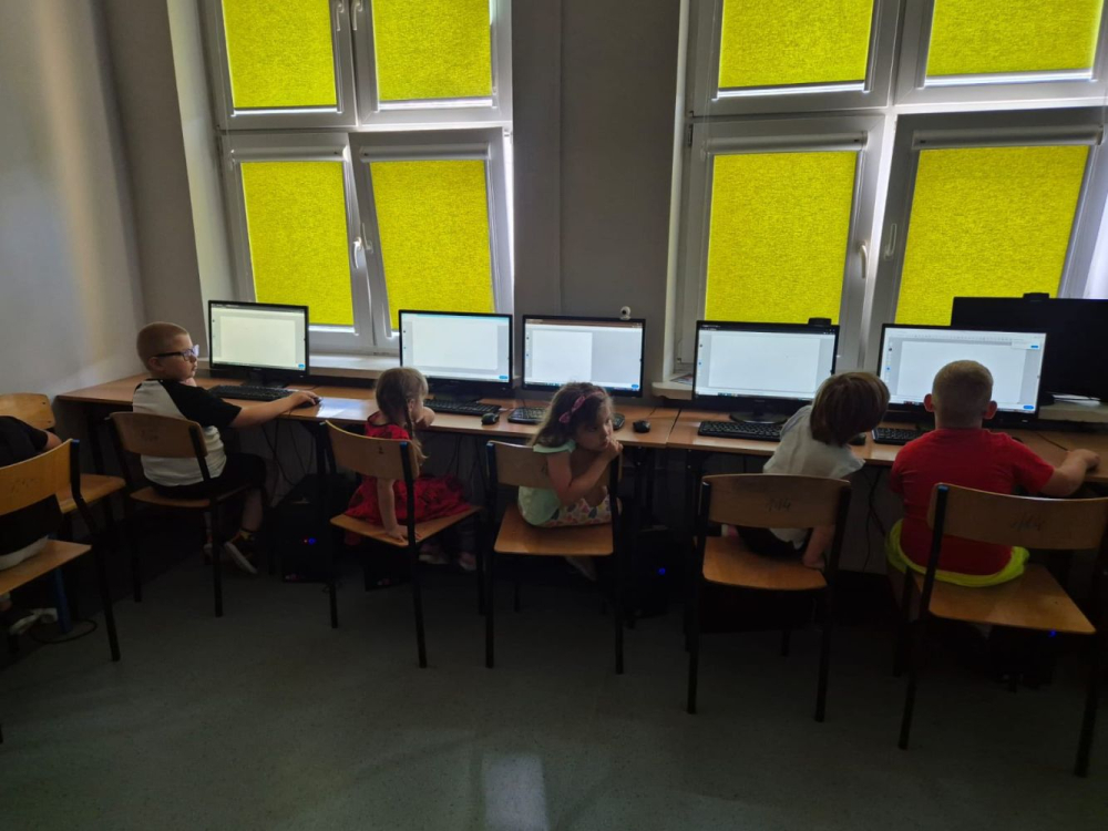 Dzieci poznały historię komputera oraz jego budowę. Pan Maciej pokazał też stary komputer sprzed kilkudziesięciu lat, a potem dzieci uczyły się tworzyć rysunki w specjalnym programie. To była wspaniała przygoda z technologią. Bardzo dziękujemy panu Maciejowi za wspaniałe zajęcia i inspirującą podróż do świata komputerów.