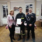 Burmistrz Miasta Lubawka Ewa Kocemba wręczyła podziękowania strażakowi z OSP Chełmsko Śląskie