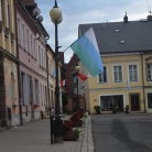 Flagi przed Jarmarkiem